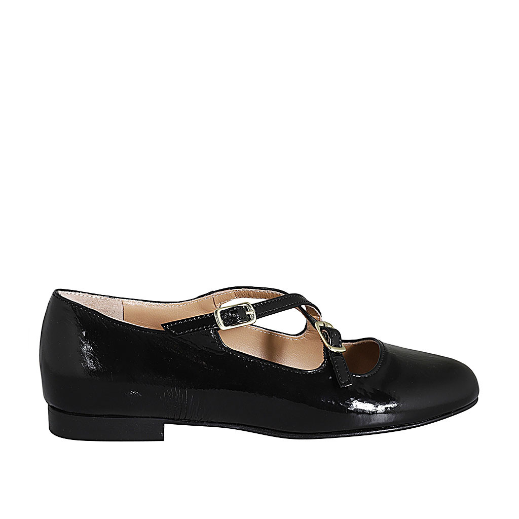 Mary Jane für Damen mit Riemchen und runder Spitze aus schwarzem Lackleder Absatz 1