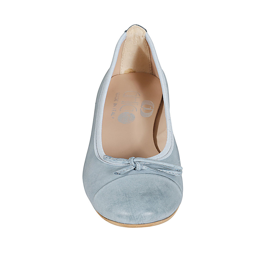 Damenballerina aus hellblauem Leder mit Kappe und Schleife Absatz 2