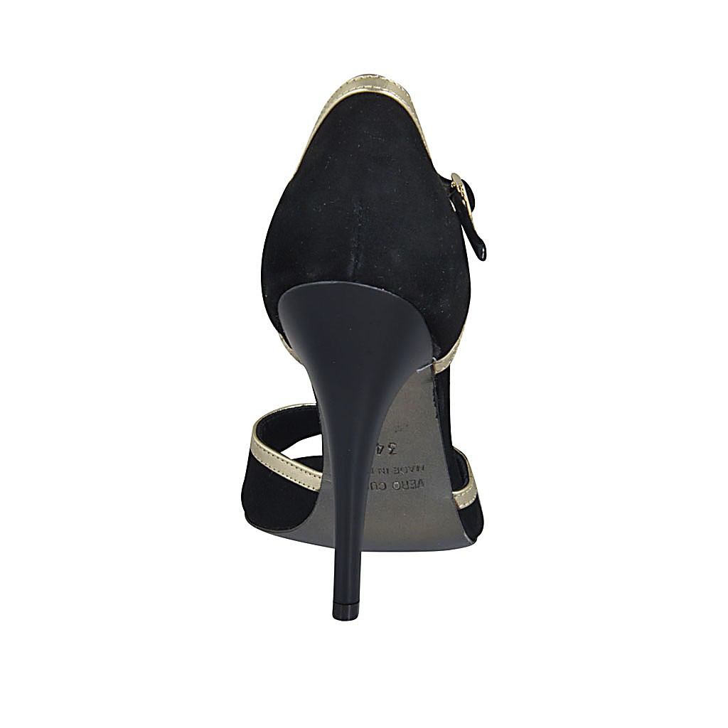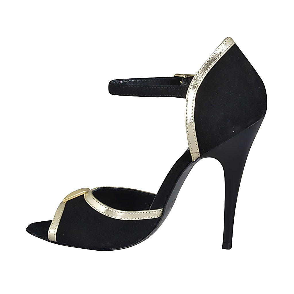 Damenriemsandale mit bunten Kristall-Strasssteinen aus schwarzem Leder Absatz 10