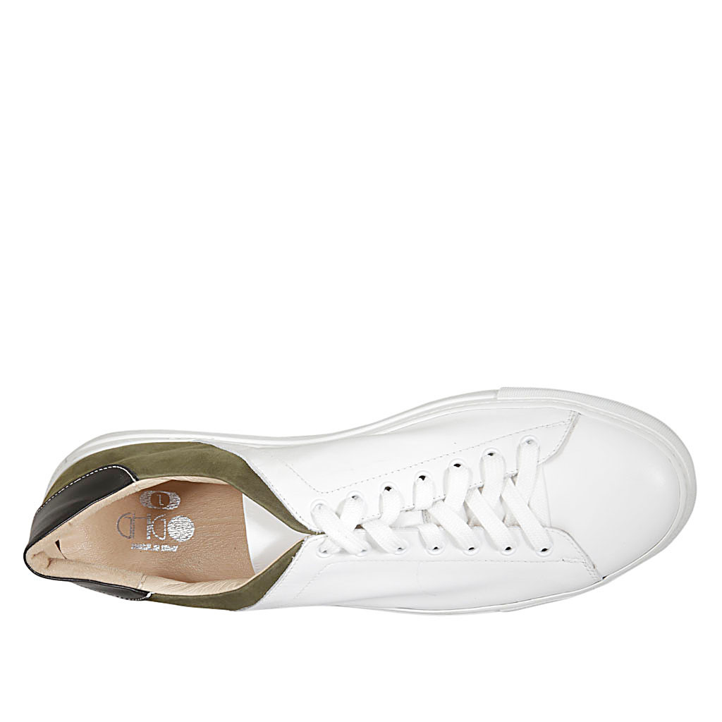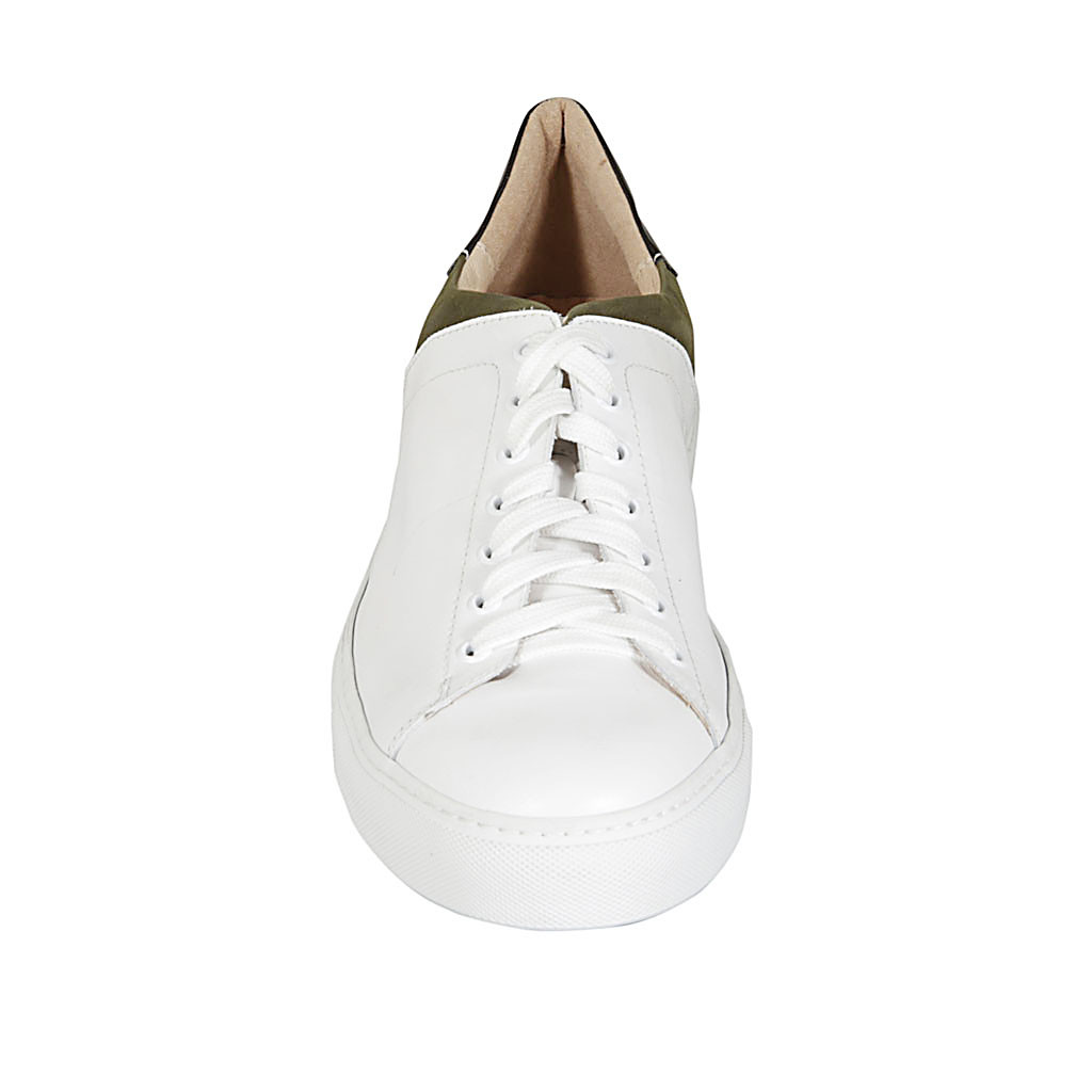 Herrenschnürschuh mit herausnehmbarer Innensohle aus weißem und schwarzem Leder und grünem Wildleder