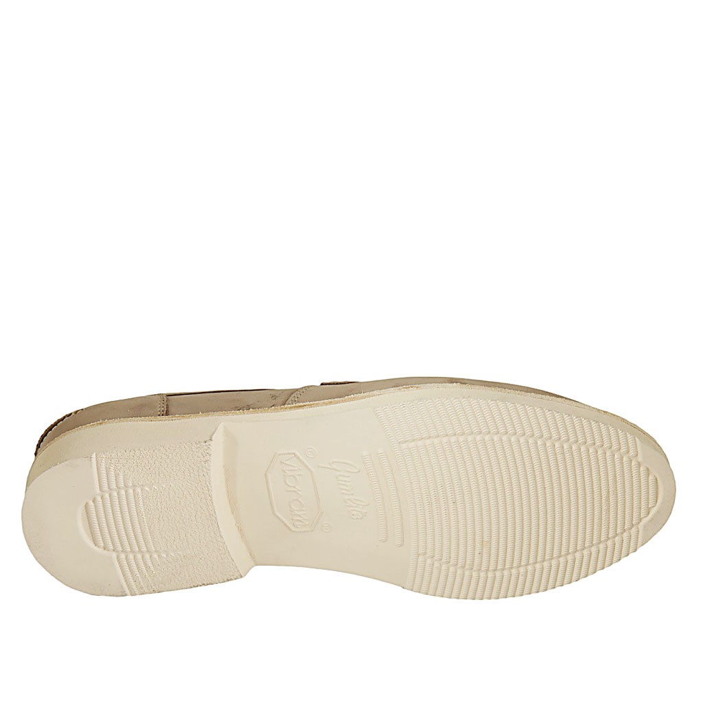 Damenschuh mit Schnürsenkeln und Plateau aus braunem Leder mit weißen Blumen Absatz 10