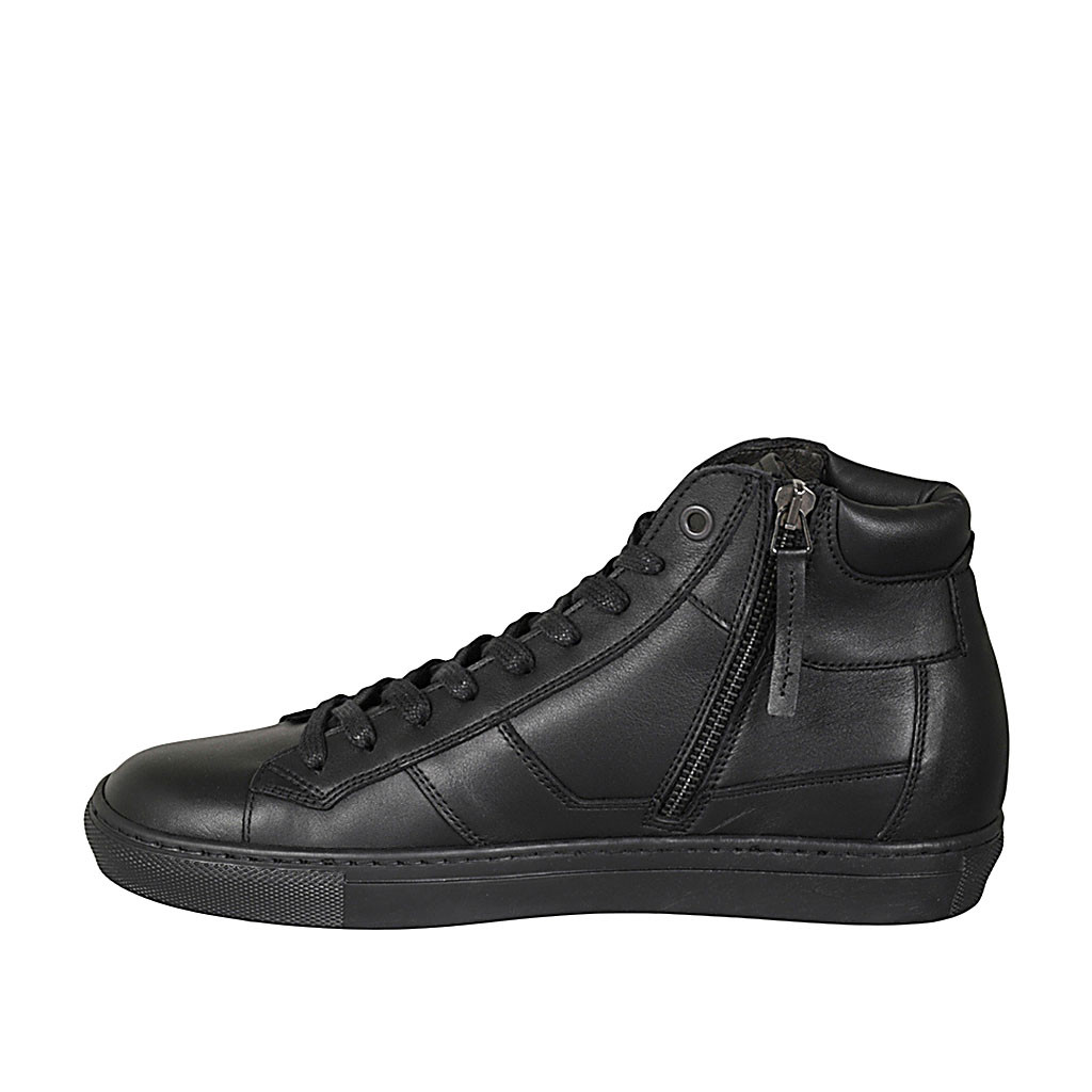 Knöchelhoher Herrenschuh mit Schnürsenkeln und Reißverschluss aus schwarzem Leder