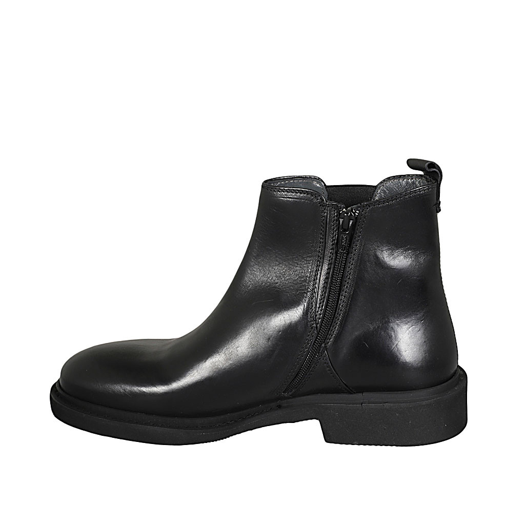 Herrenstiefelette mit Gummiband und Reißverschluss aus schwarzem Leder