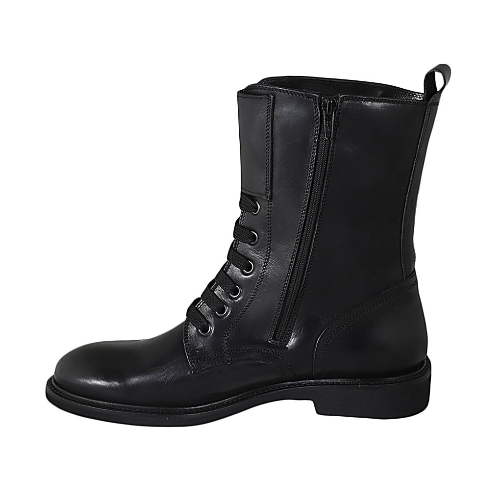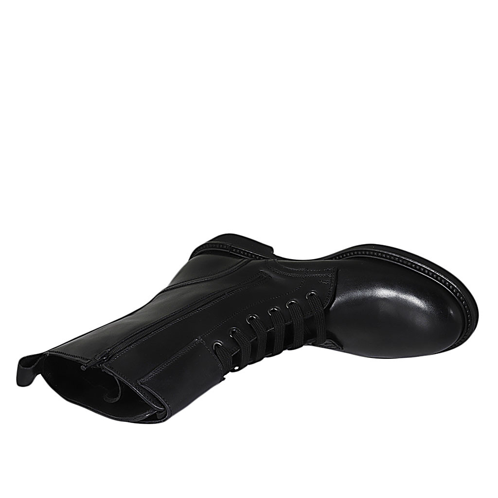 Herrenstiefelette mit Schnürsenkeln, Schnalle und Reißverschluss aus schwarzem Leder