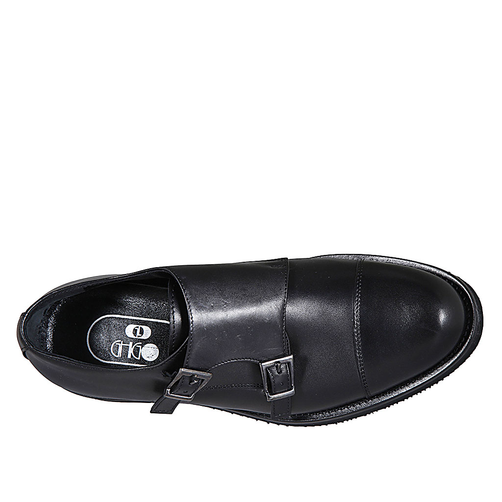 Elegante Herrenschuhe mit Schnallen und Kappe aus schwarzem Leder