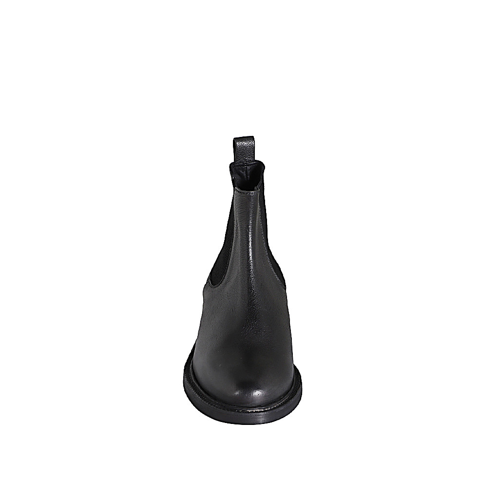 Mokassinschuh für Damen aus schwarzem Leder mit goldenem Accessoire und Absatz 4