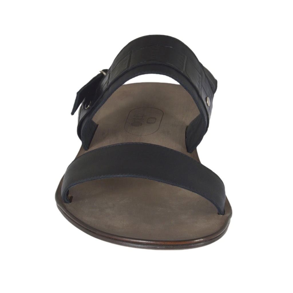 Herrensandale aus schwarzem Leder und bedrucktem Leder - Verfügbare Größen:  46, 47, 48, 49, 51, 52