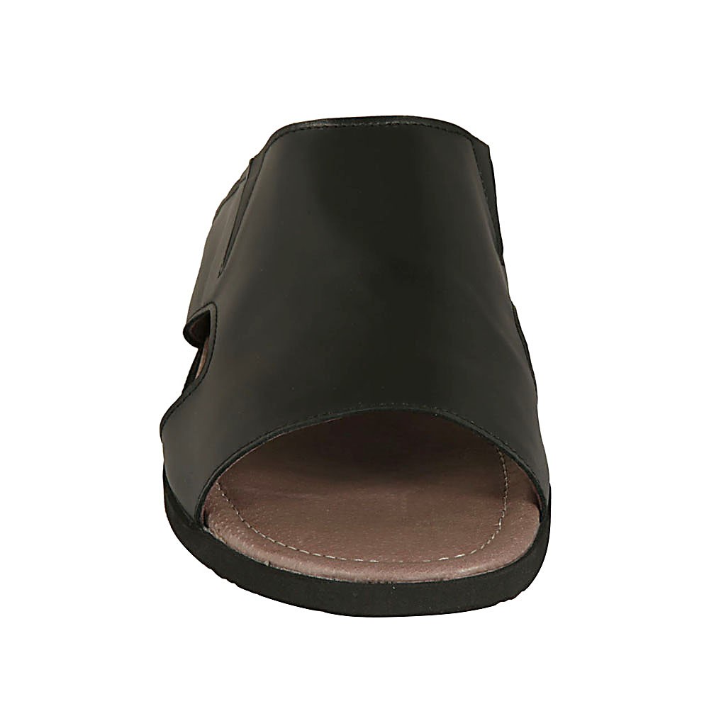 Herrenschlappen mit Gummiband aus schwarzem Leder