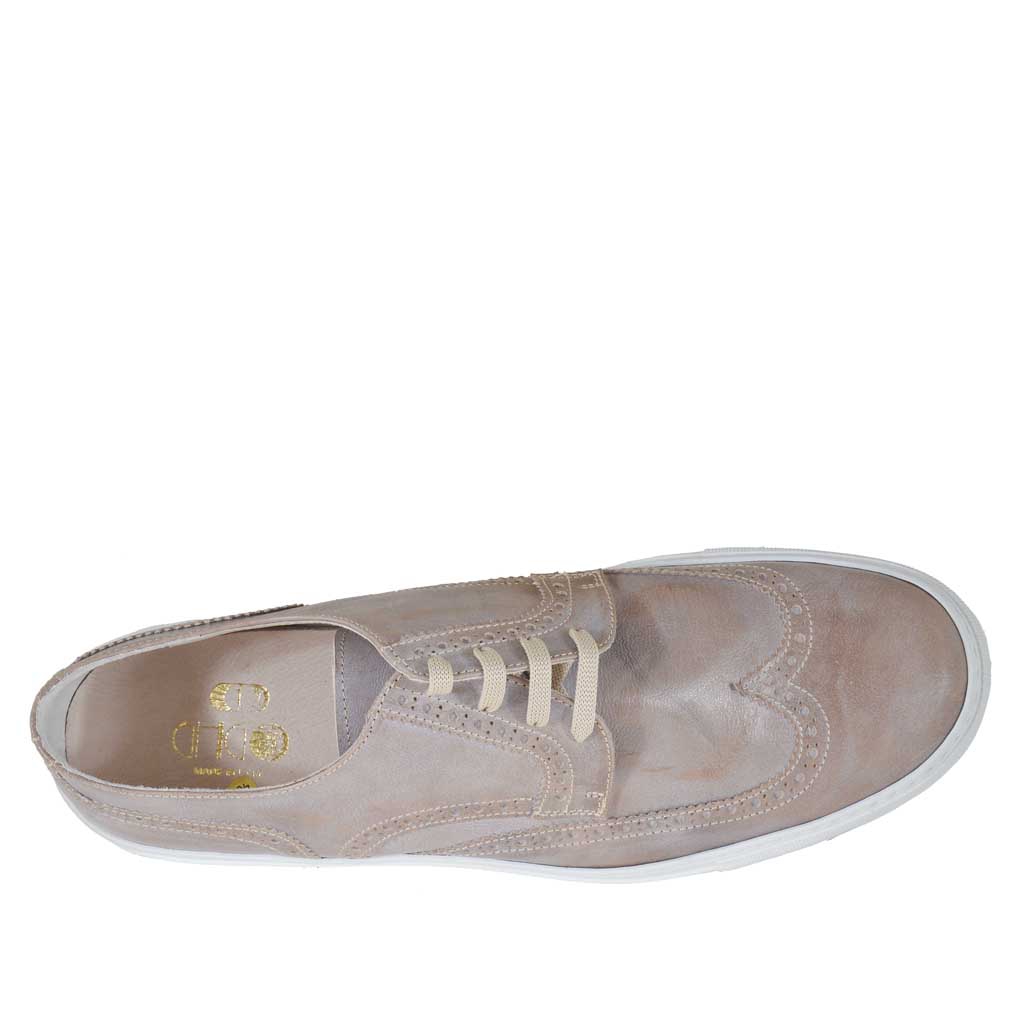 Freizeitschuh mit Schnürsenkeln und Flügelkappe für Herren aus taupe Vintageleder - Verfügbare Größen:  46