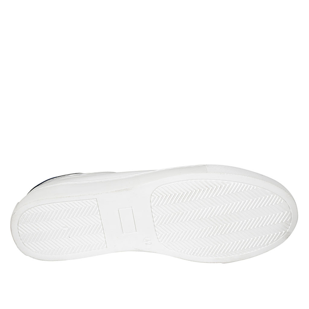 Damenschnürschuh mit herausnehmbarer Innensohle aus weißem und blauem Leder Keilabsatz 3