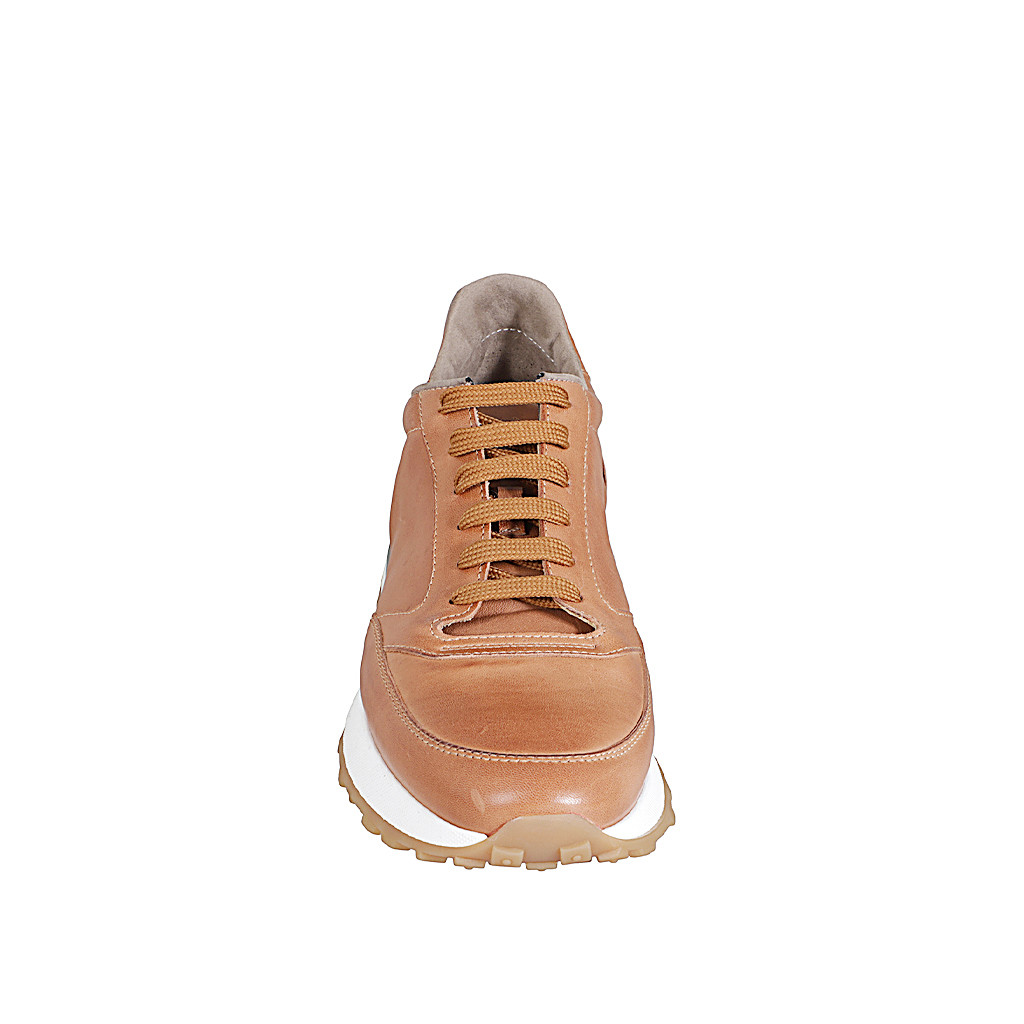 Sneaker mit abnehmbarer Innensohle aus braunem Leder Keilabsatz 3