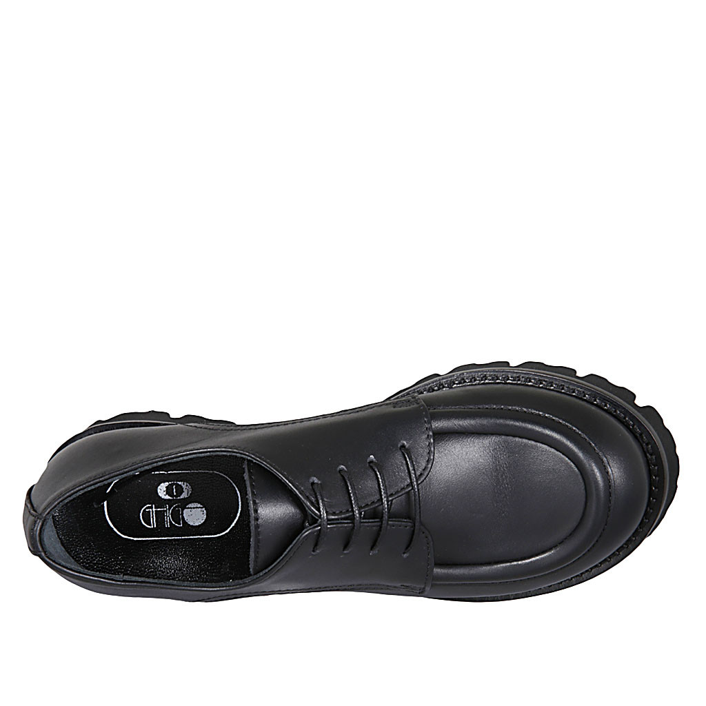 Damenderbyschuh mit Schnürsenkeln aus schwarzem Leder Absatz 3