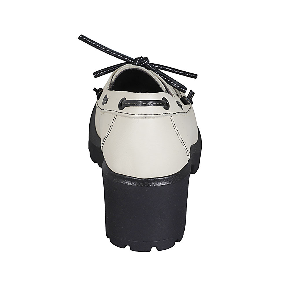 Damenschuh aus weißem Leder mit Schnüren Absatz 6