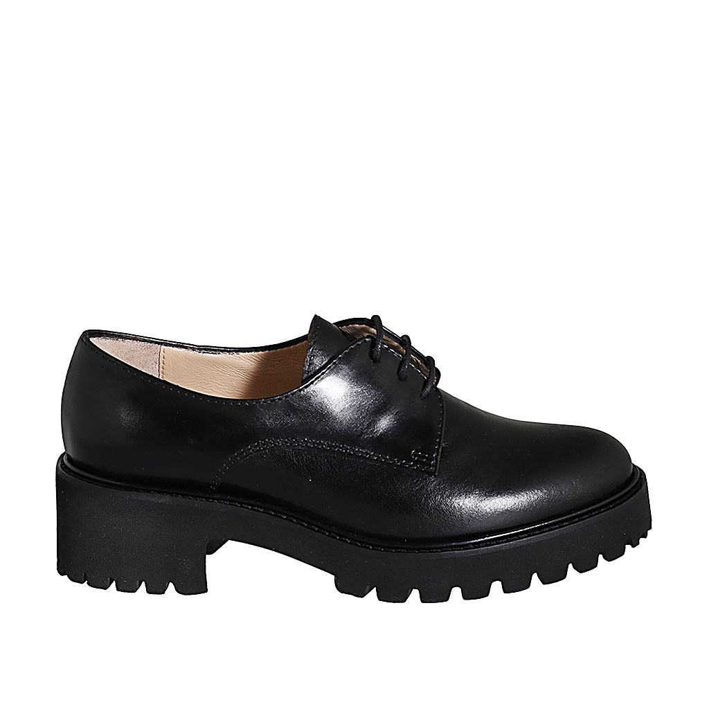 Damenderbyschuh mit Schnürsenkeln aus schwarzem Leder Absatz 5