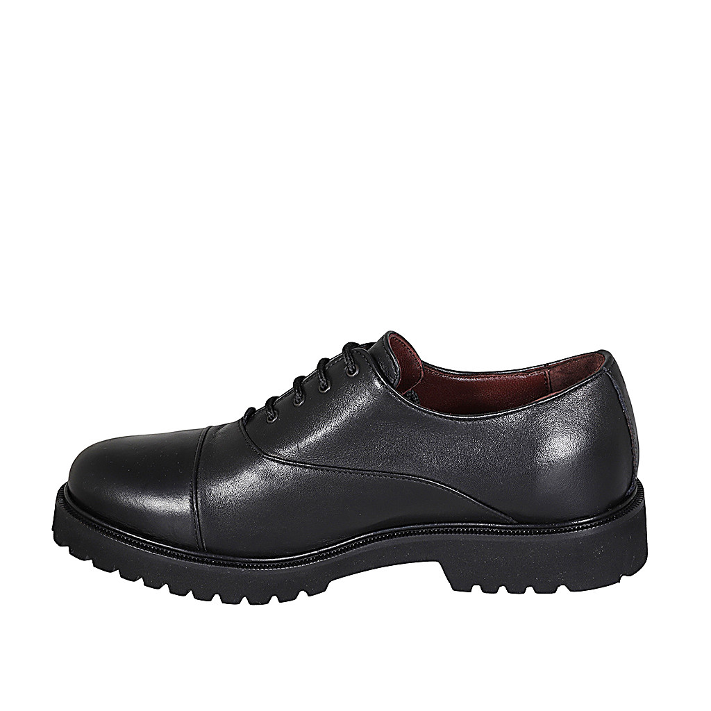 Damenoxfordschuh mit Kappe, Schnürsenkeln aus schwarzem Leder Absatz 3