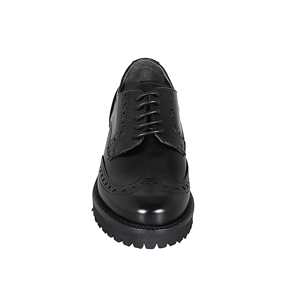Damenderbyschuh mit Schnürsenkeln aus schwarzem Leder Absatz 3