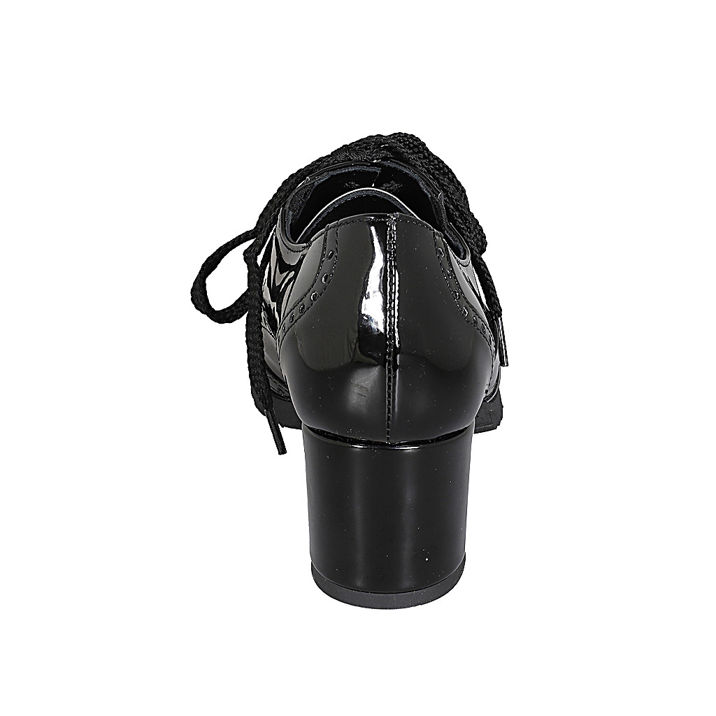 Damenoxfordschuh mit Schnürsenkeln, abnehmbarer Innensohle und Flügelkappe aus schwarzem Lackleder Absatz 6