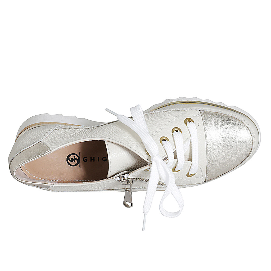 Offene Damenpantolette aus weißem und silberlaminiertem Leder Absatz 2