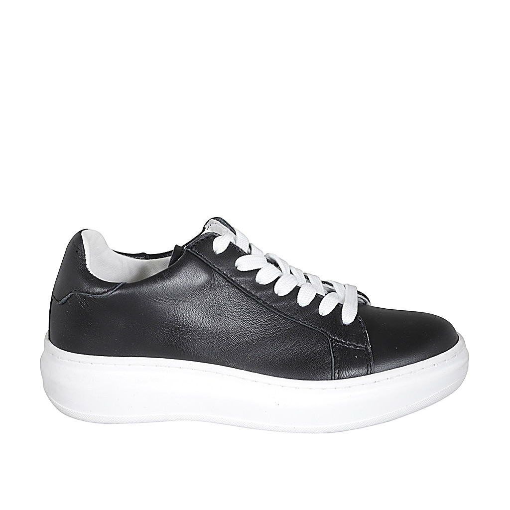 Damenschnürschuh mit abnehmbarer Innensohle aus schwarem Leder Keilabsatz 4