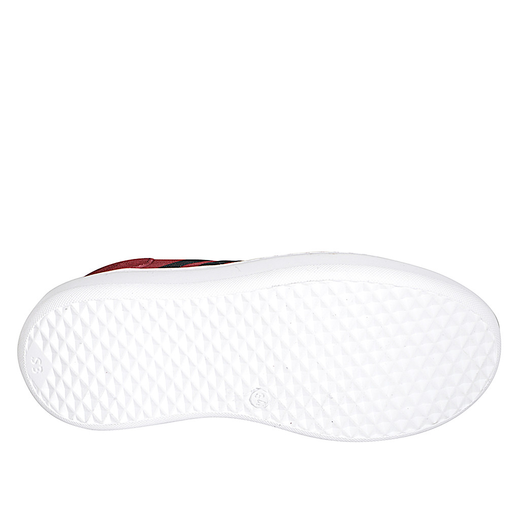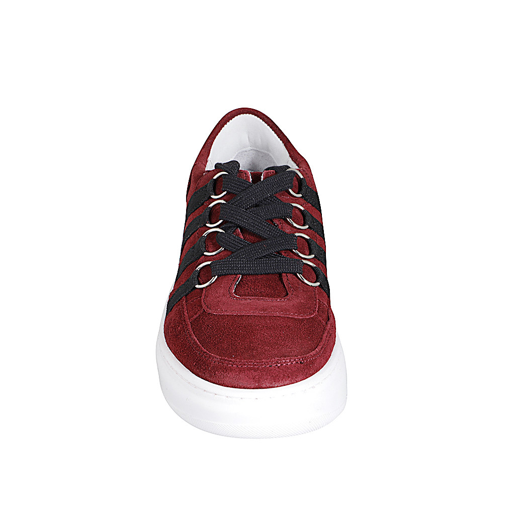 Damen-Schnürsneaker mit abnehmbarer Innensohle aus bordeauxfarbenem Wildleder und schwarzem Stoff Keilabsatz 4