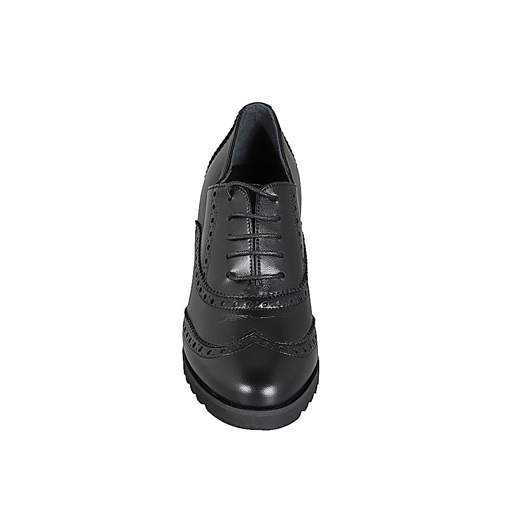 Herrenderbyschuh mit Schnürsenkeln und mit Blumenmuster perforierter Kappe aus beigem Leder