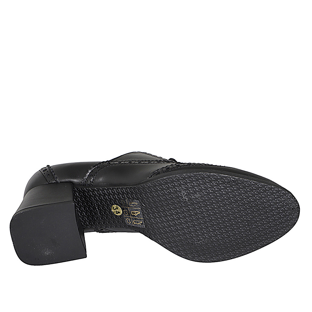 Oxfordschuh mit Schnürsenkeln für Damen aus schwarzem Leder mit Flügelkappe und Absatz 5
