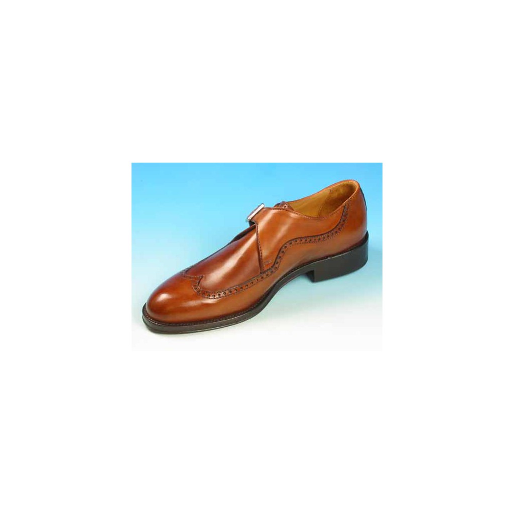 Herrenschuh mit Schnalle und Flügelkappe aus cognacbraunem Leder