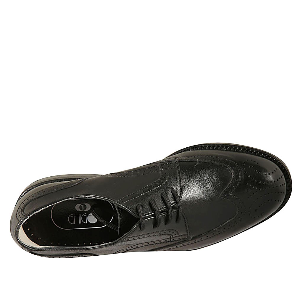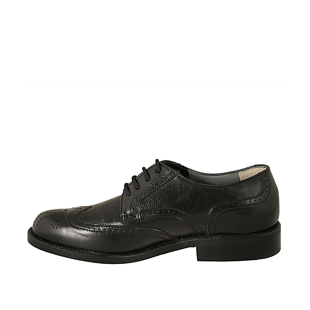 Eleganter Herrenderbyschuh aus schwarzem Leder mit Schnüren und Broguedekoration - Verfügbare Größen:  36, 37, 38, 47, 49, 50
