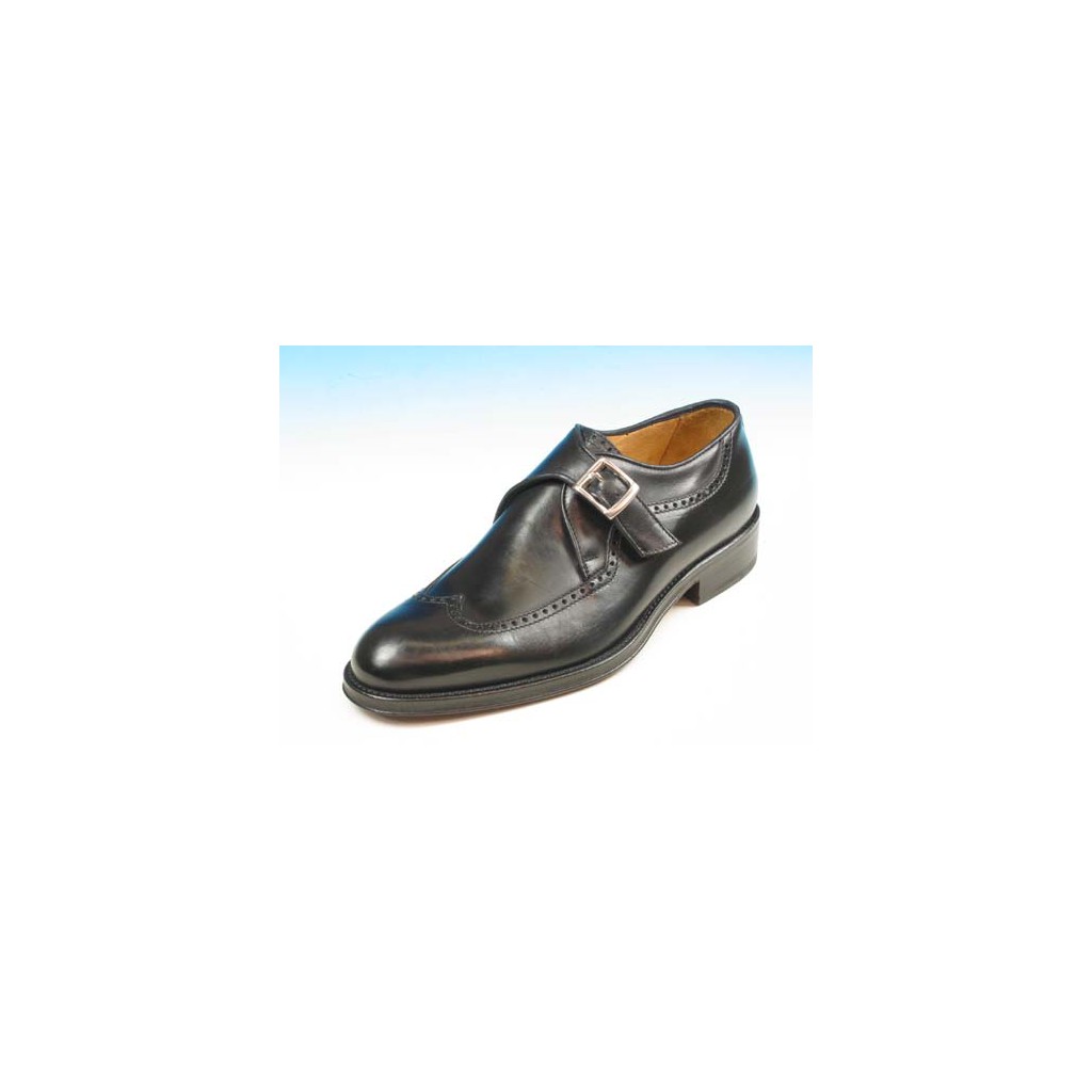 Eleganter Herrenschuh mit Schnalle und Flügelkappe aus schwarzem Leder - Verfügbare Größen:  37, 40, 44, 50, 52, 54