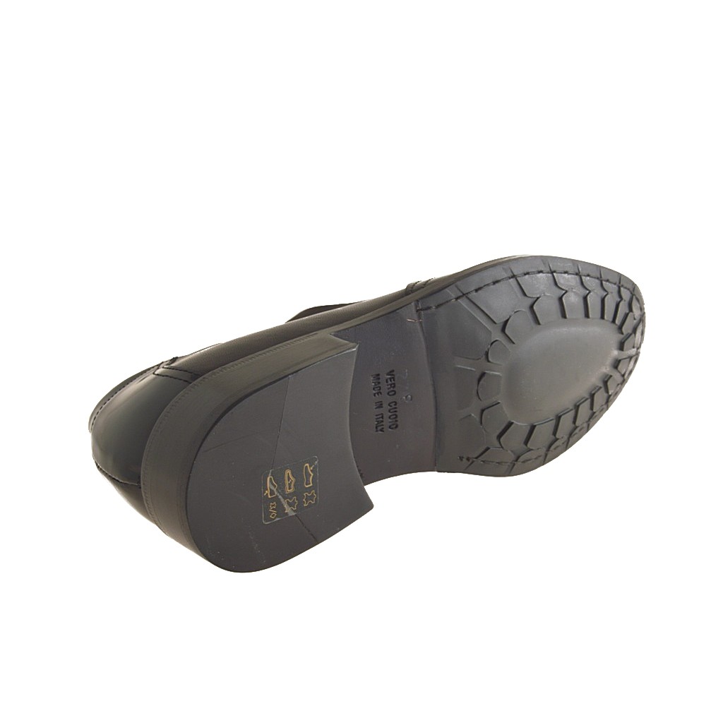 Herrenschuh mit Gummibändern und Flügelkappe aus schwarzem Leder und Lackleder - Verfügbare Größen:  48, 49, 50, 51
