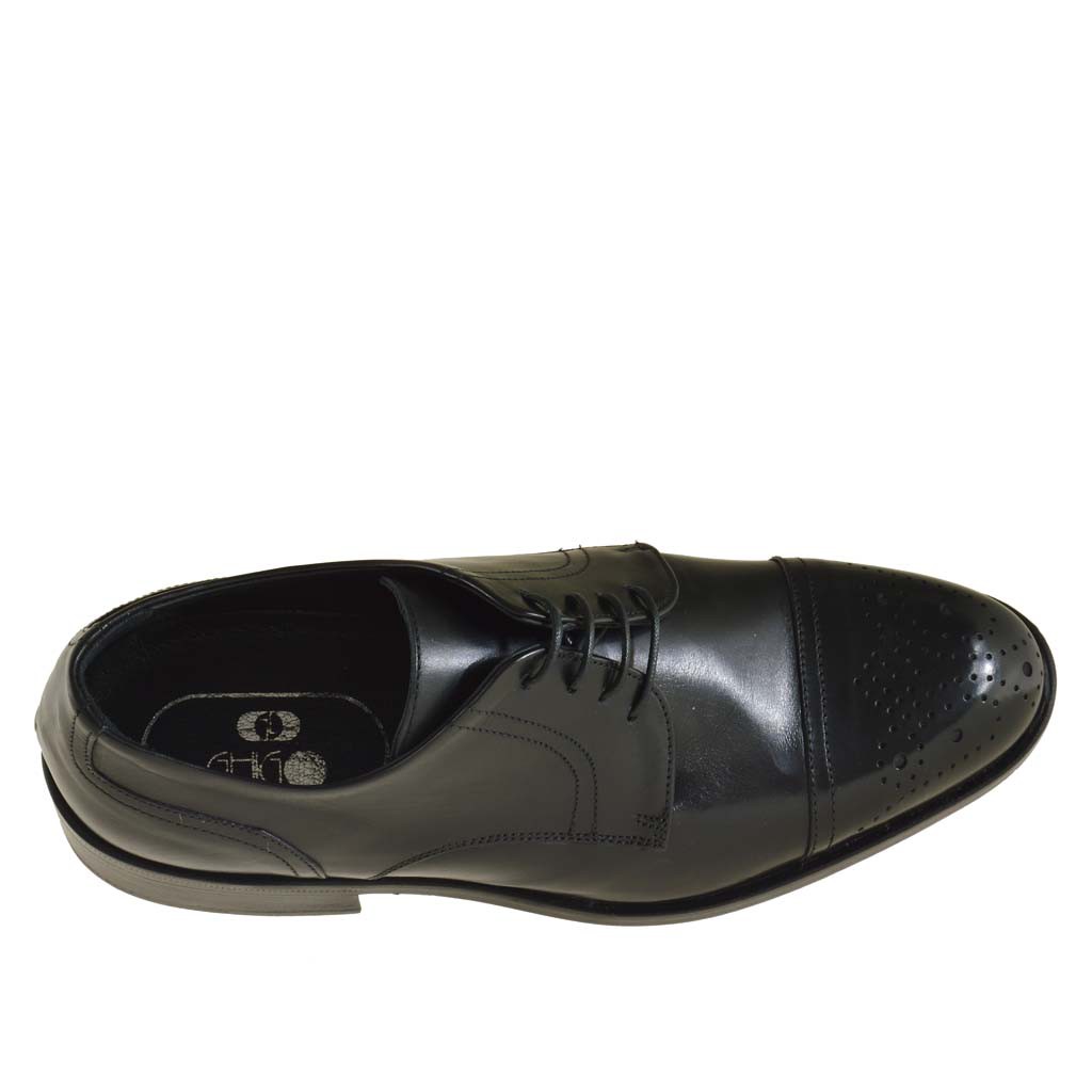 Herrenderbyschuh mit Kappe und Schnürsenkeln aus schwarzfarbigem Leder - Verfügbare Größen:  36