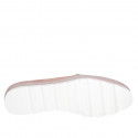 Geschlossener Damenschuh mit Gummibändern und Accessoire aus blaugrauem Wildleder Absatz 3