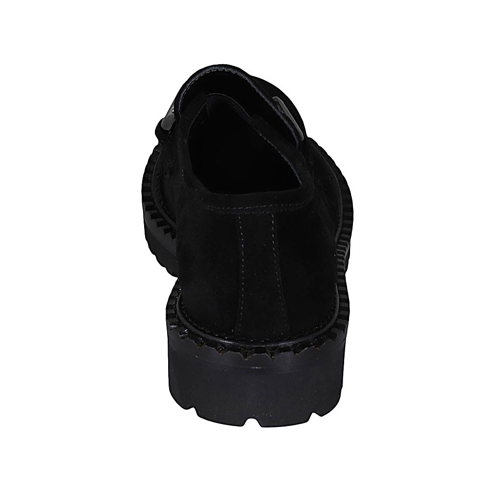 Damenmokassin mit Accessoire aus schwarzem Wildleder Absatz 3