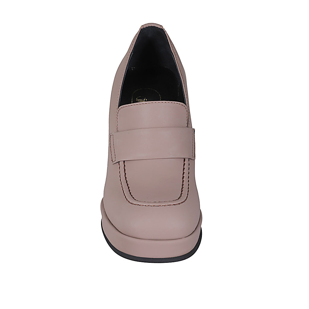 Damensandale aus rosafarbigem und hellblauem Leder mit transparentem Stoff und Gummiband Absatz 2