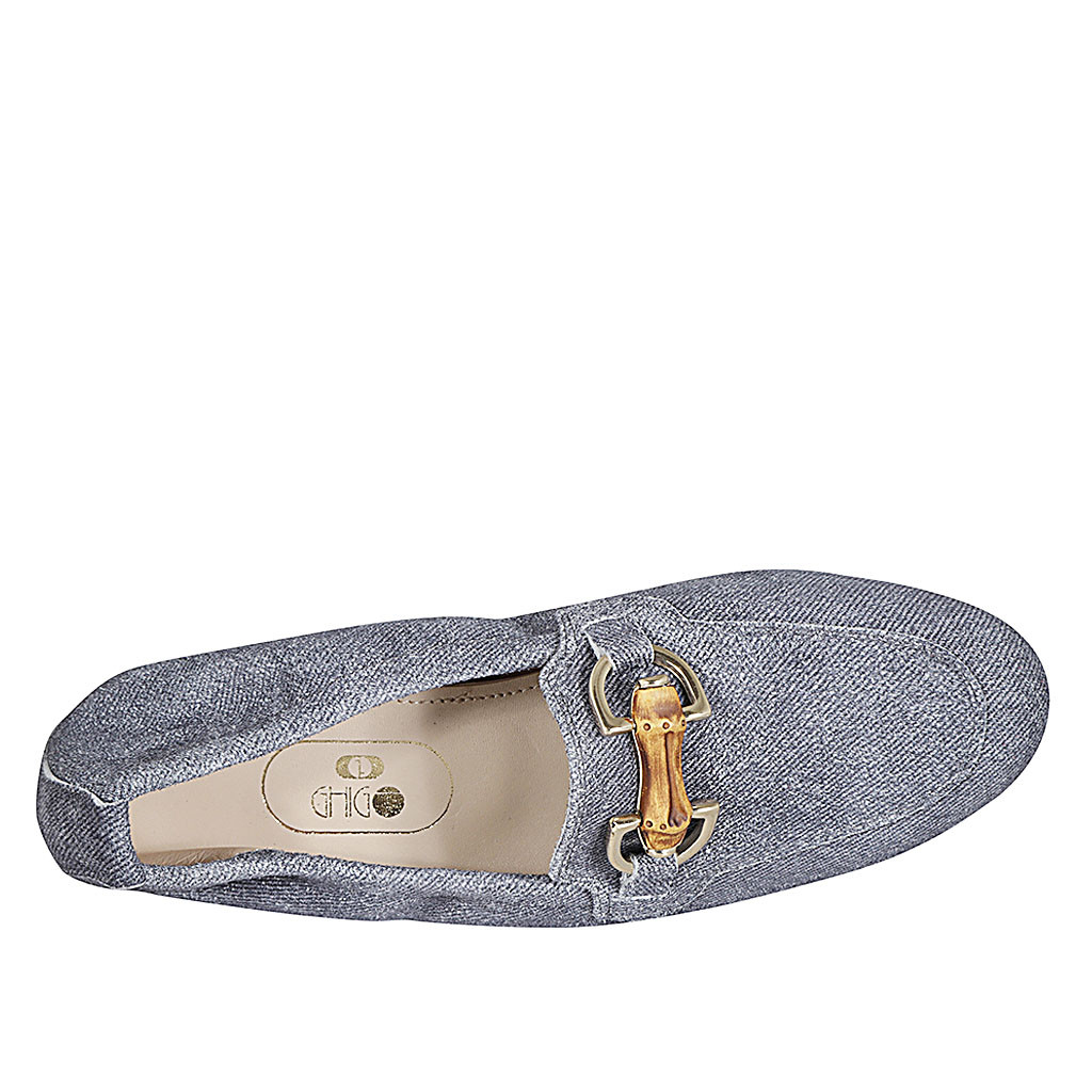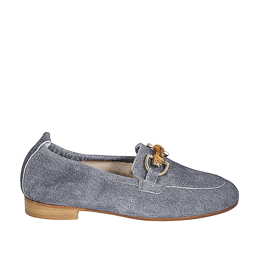 Damenmokassin mit Accessoire aus dunkelblauem denimähnlichem Wildleder Absatz 2
