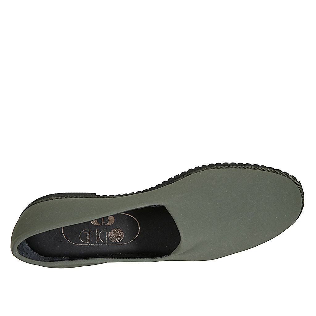 Damenmokassin mit Gummibändern und Quasten aus buntem Schottenstoff und bordeauxfarbenem Lackleder Absatz 4