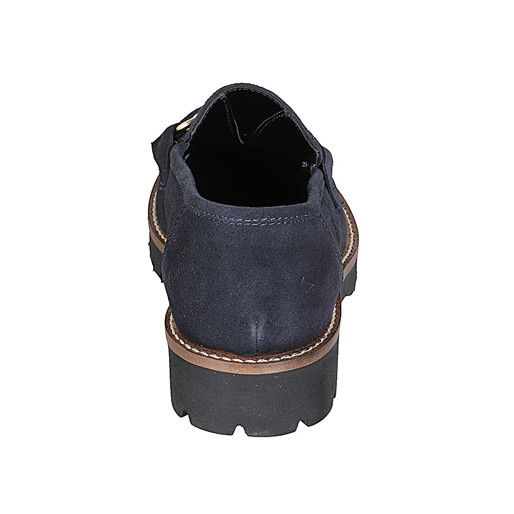 Damenmokassin mit Accessoire aus blauem Wildleder Absatz 3