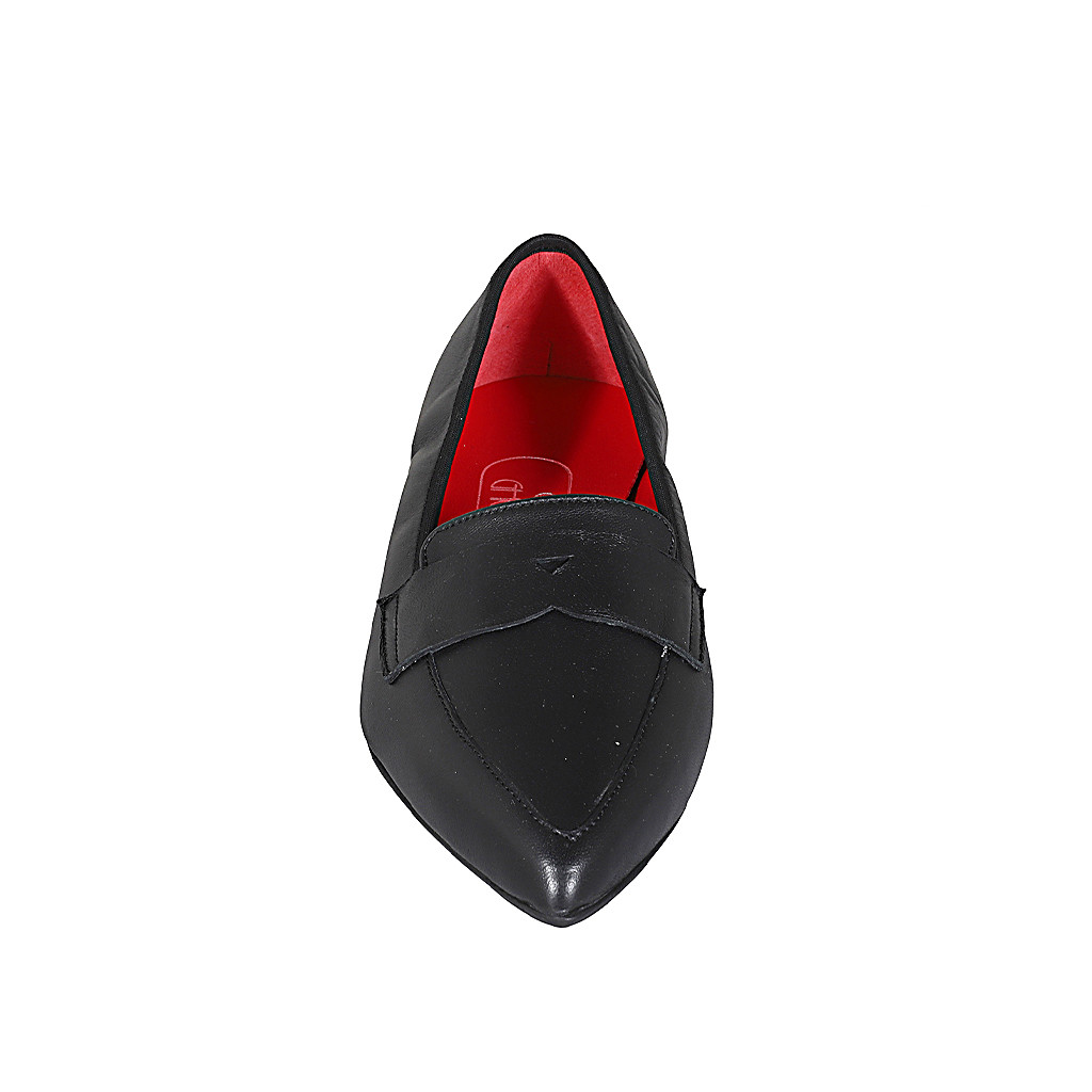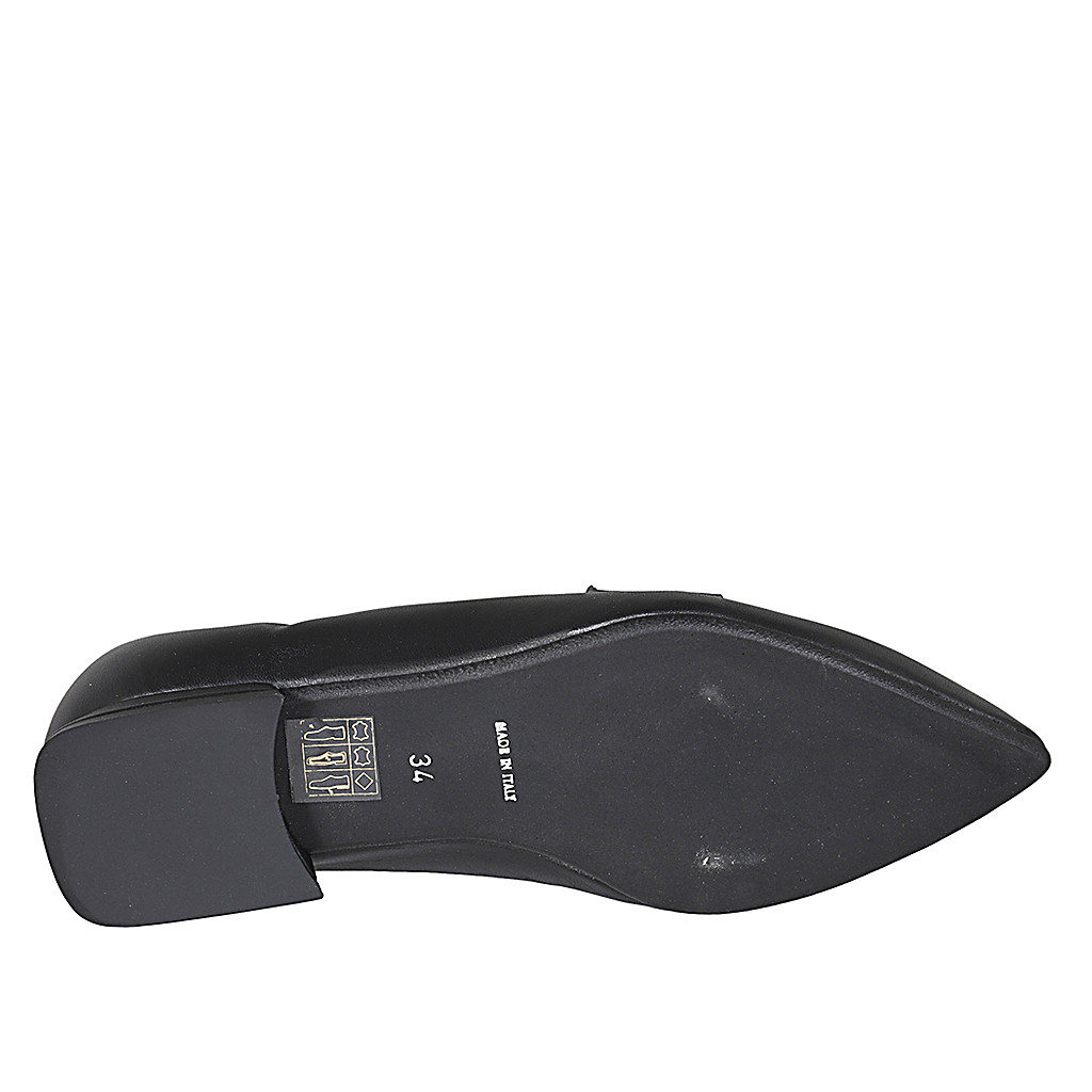 Spitzer Mokassinschuh für Damen aus schwarzem Leder mit Absatz 1