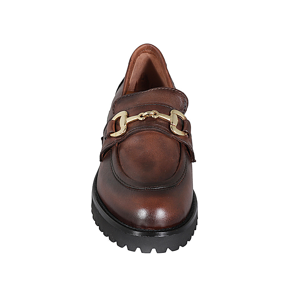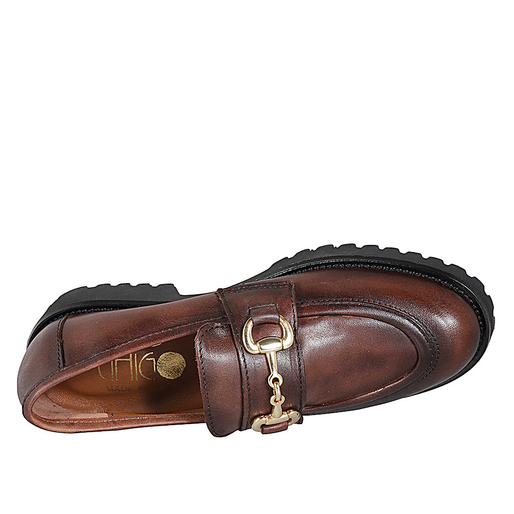 Damenmokassin mit Accessoire aus cognacbraunem Leder Absatz 3