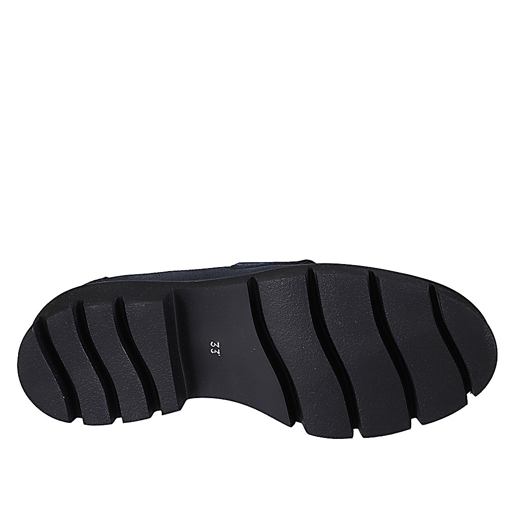 Damen-College-Mokassin aus blauem Wildleder und blau-weißem Stoff Absatz 3
