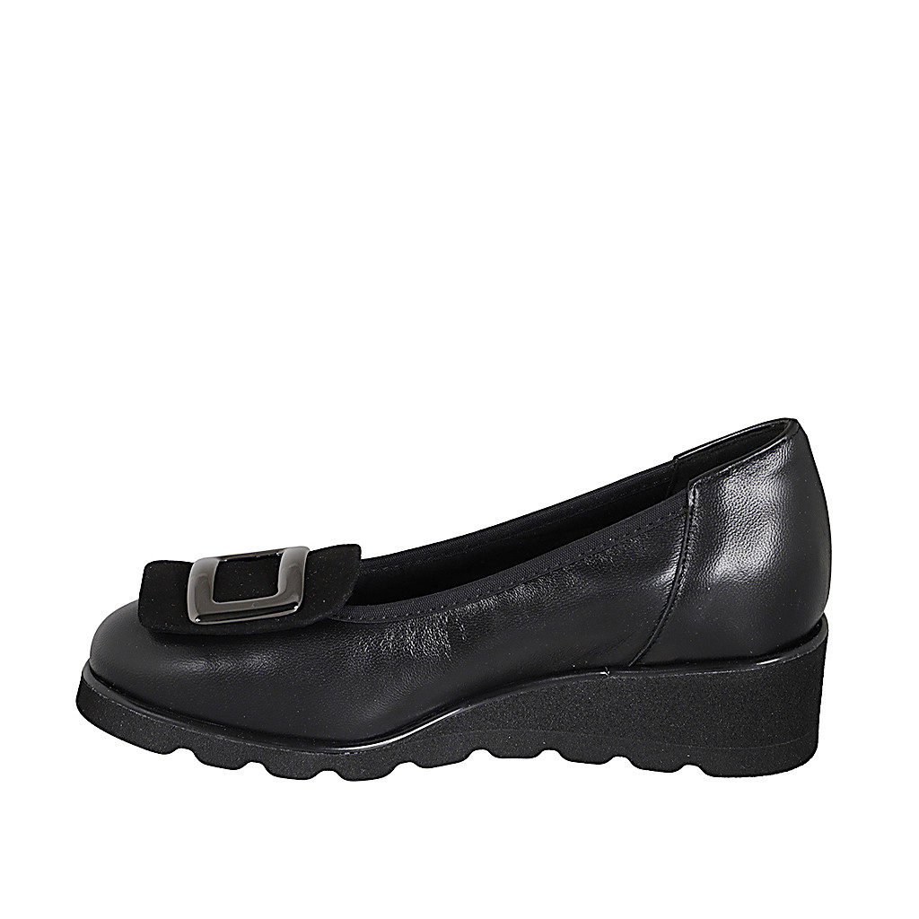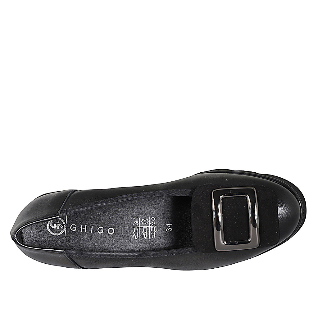 Runder Pumpschuh für Damen aus blauem Leder Absatz 6