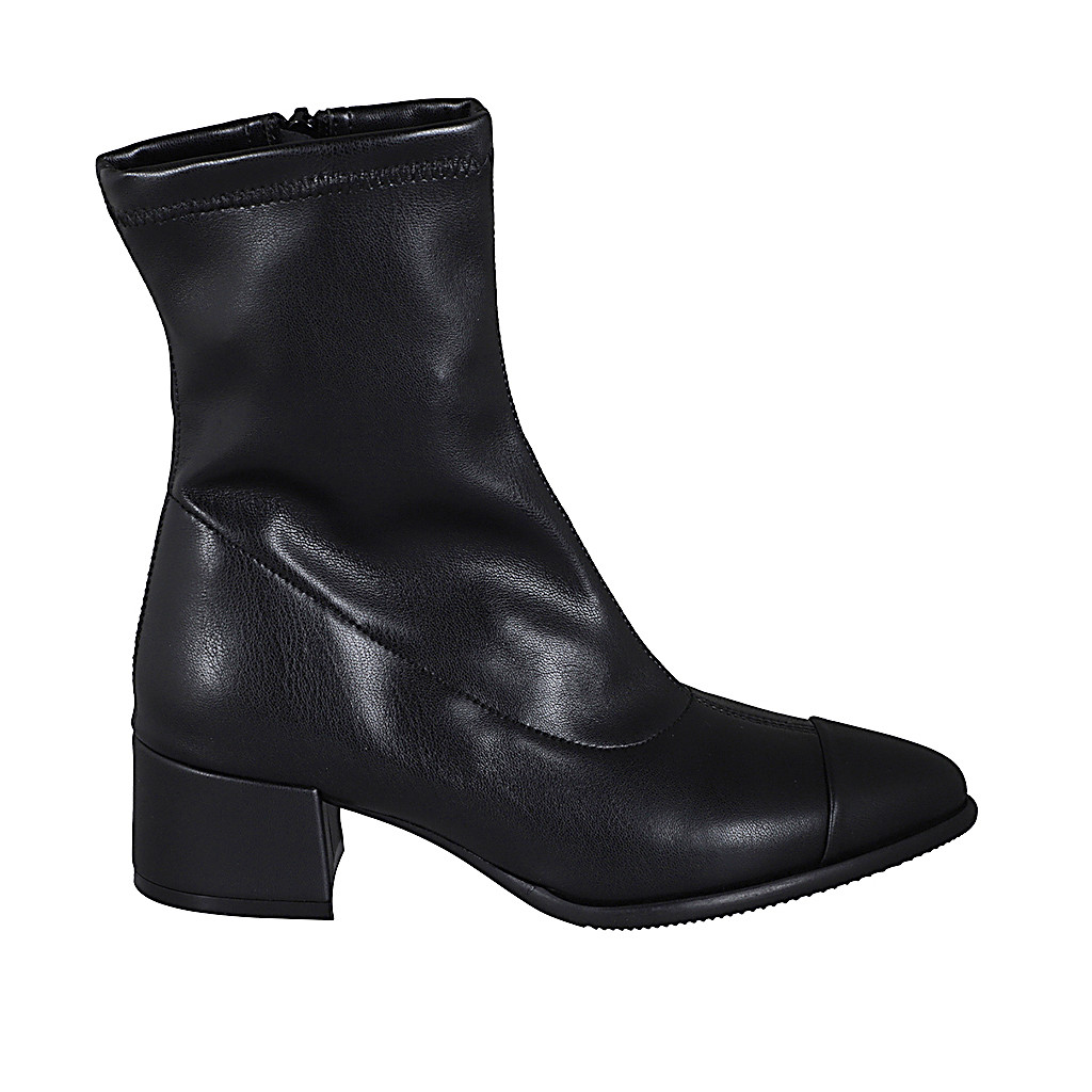Spitze Damenstiefelette aus schwarzem elastischem Leder und Leder mit Kappe und Reißverschluss Absatz 5