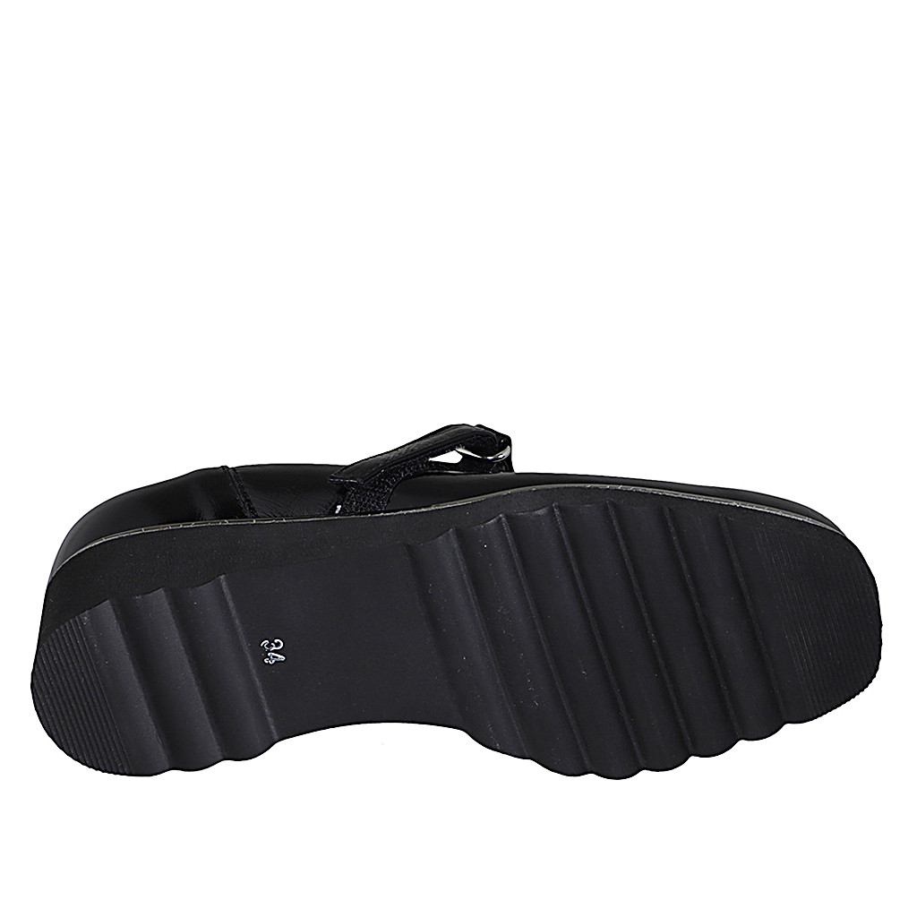 Damen-Mary-Jane-Pumps aus schwarzem Lackleder mit herausnehmbarer Innensohle Keilabsatz 4