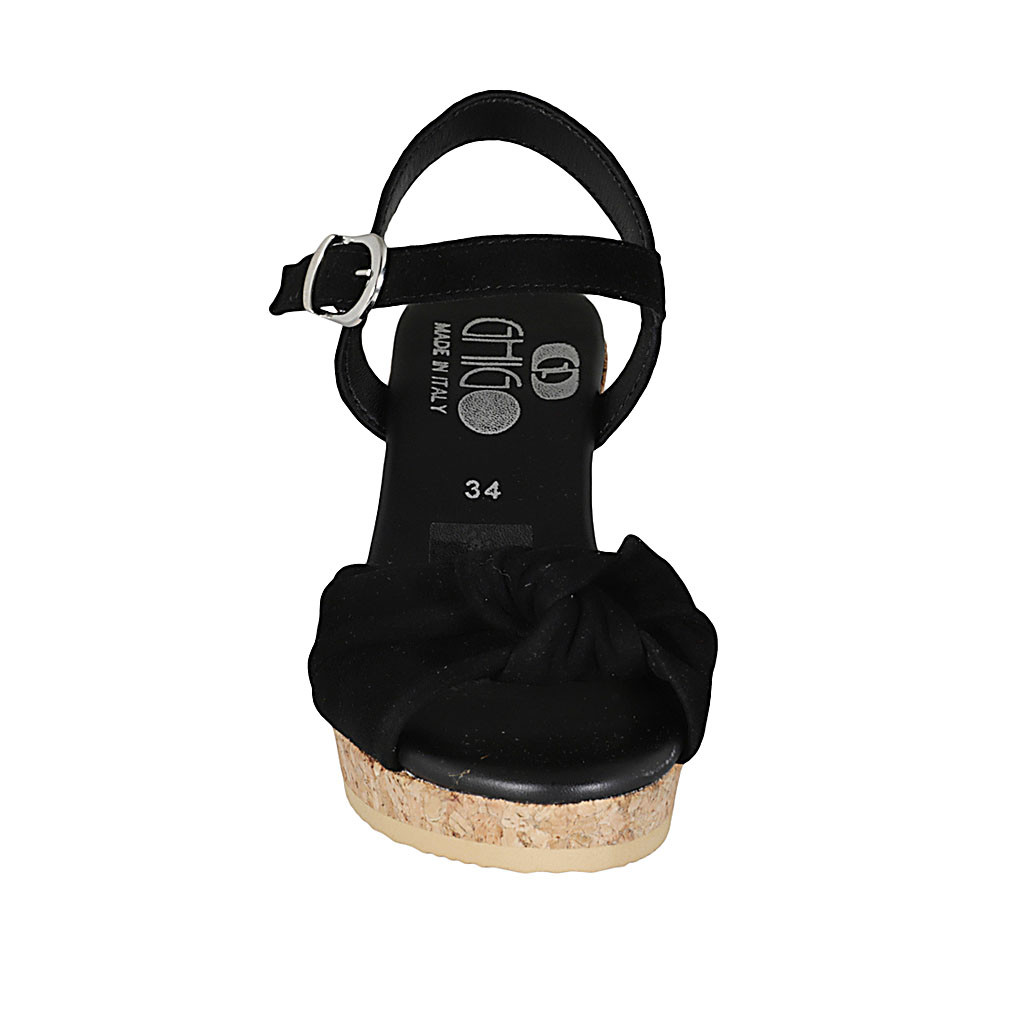 Damensandale mit Knöchelriem und Knoten aus schwarzem Wildleder Keilabsatz 7