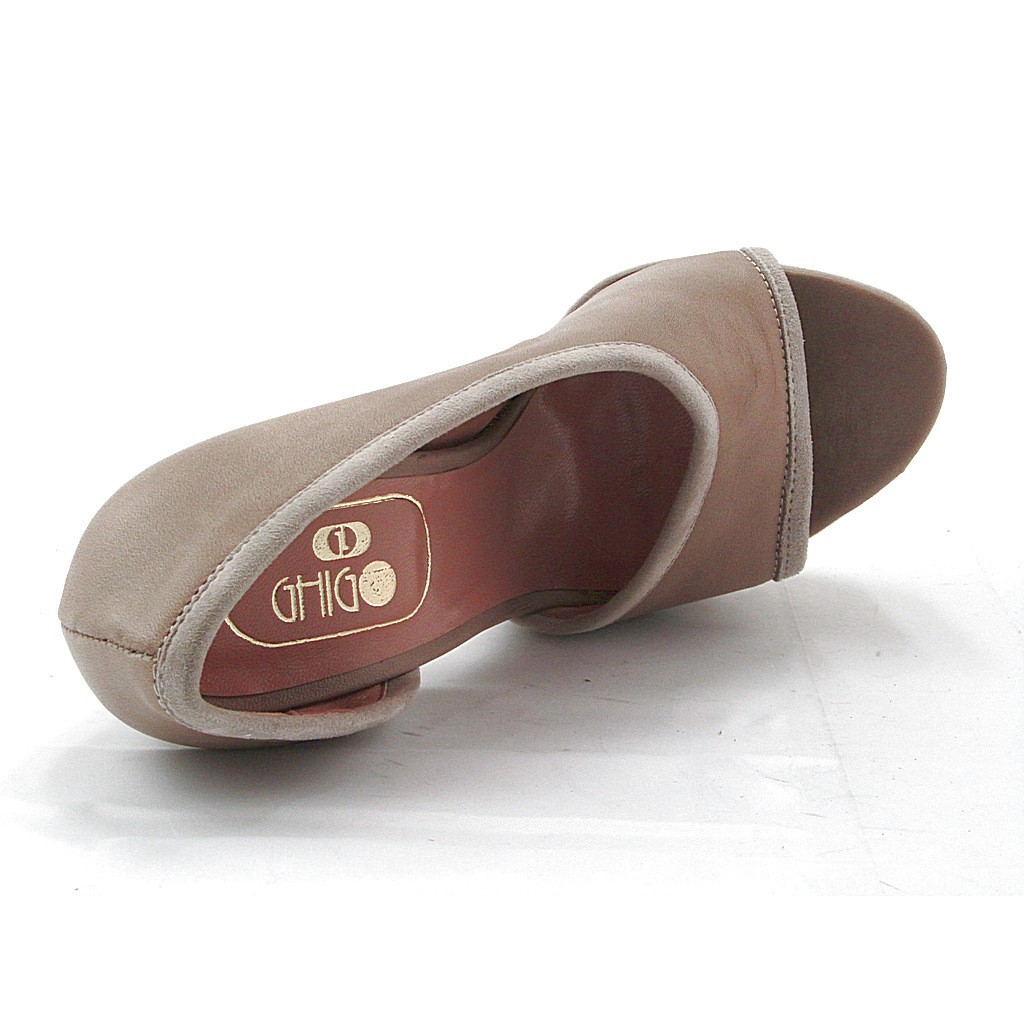 Open Toe mit Plattform, 15 cm. hohen Absatz und 4 cm. hohen Plattform, aus beigem Leder und Sämischleder, Leder Sohle, Lederfutter.