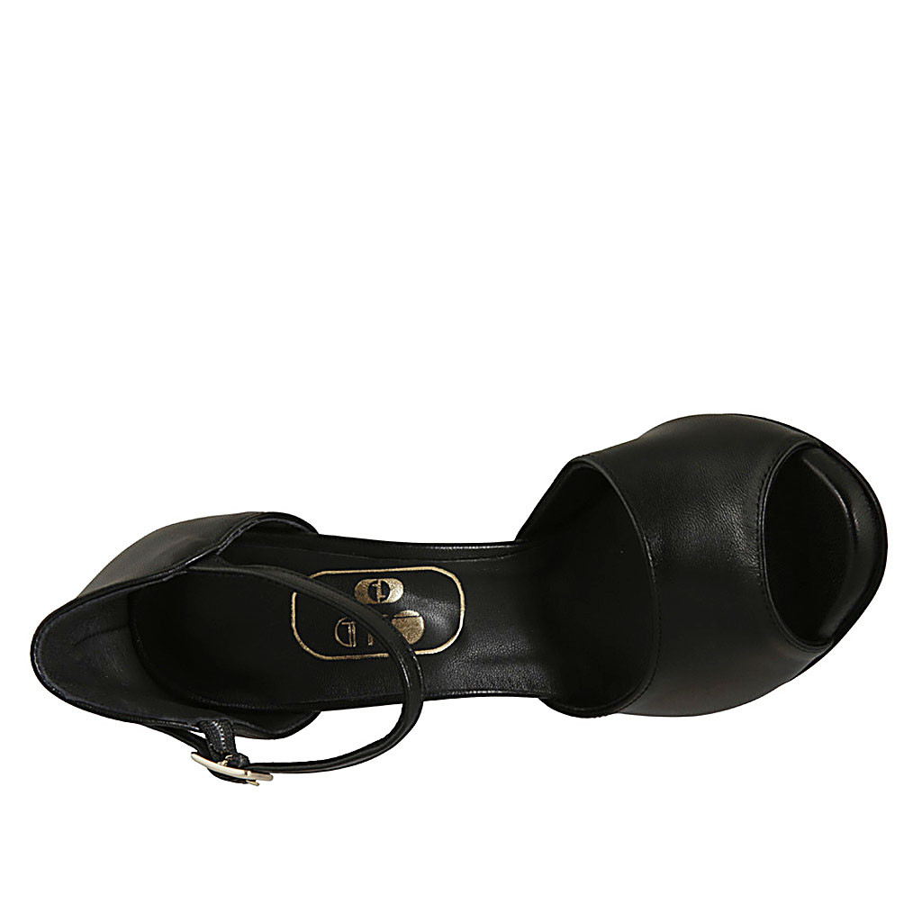 Offener Damenschuh mit Riem aus schwarzem Leder Absatz 10