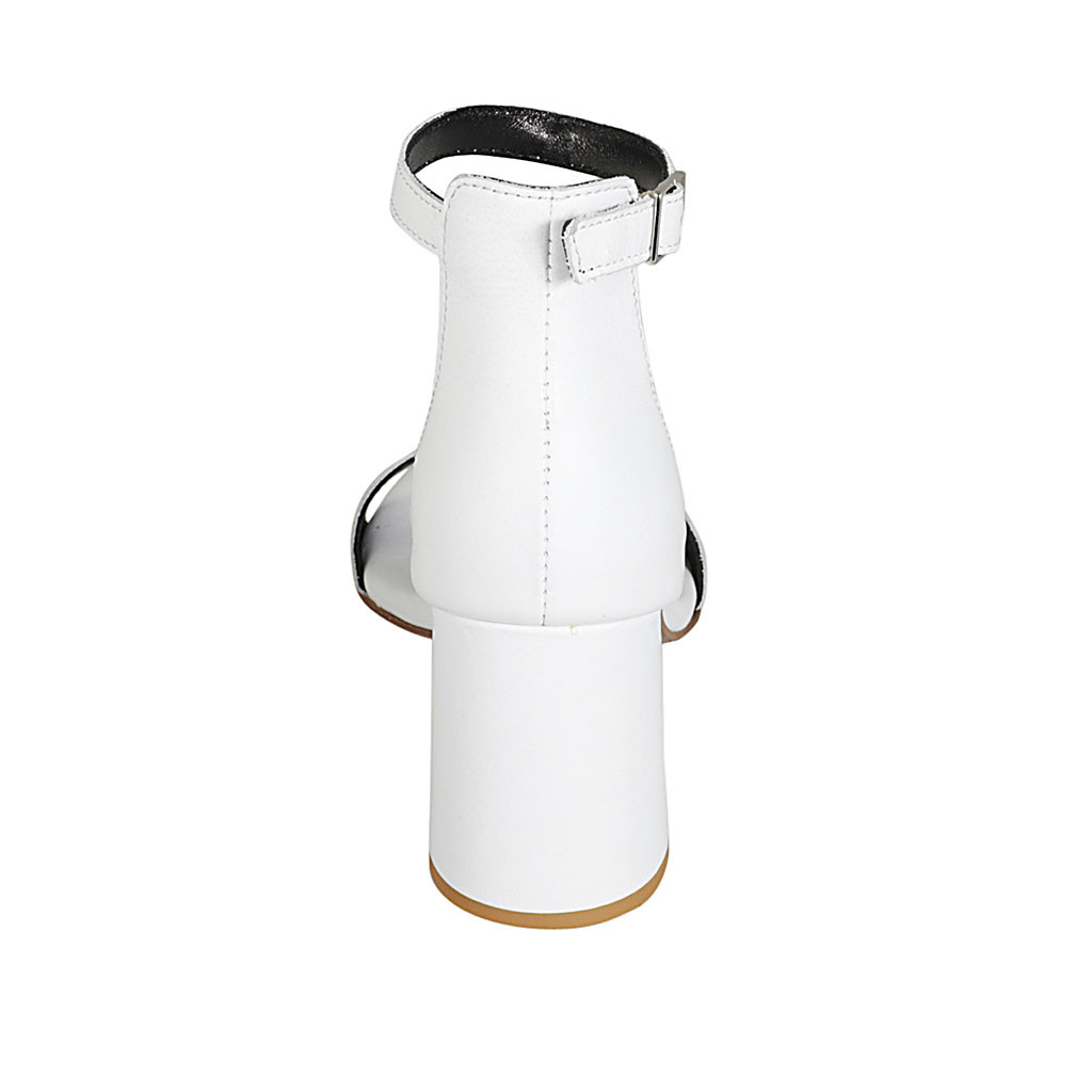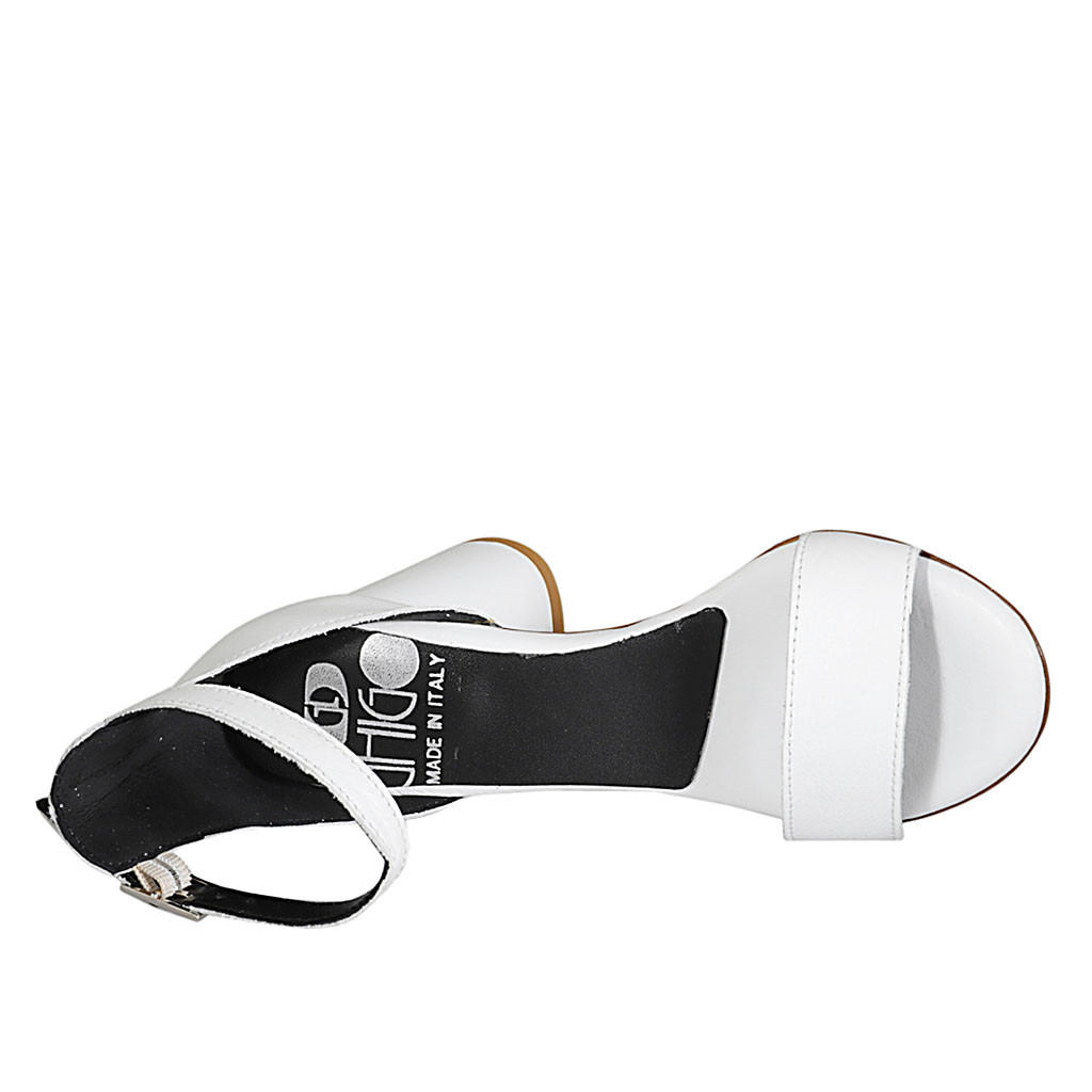 Offener Damenschuh mit Knöchelriem aus weißem Leder Absatz 7