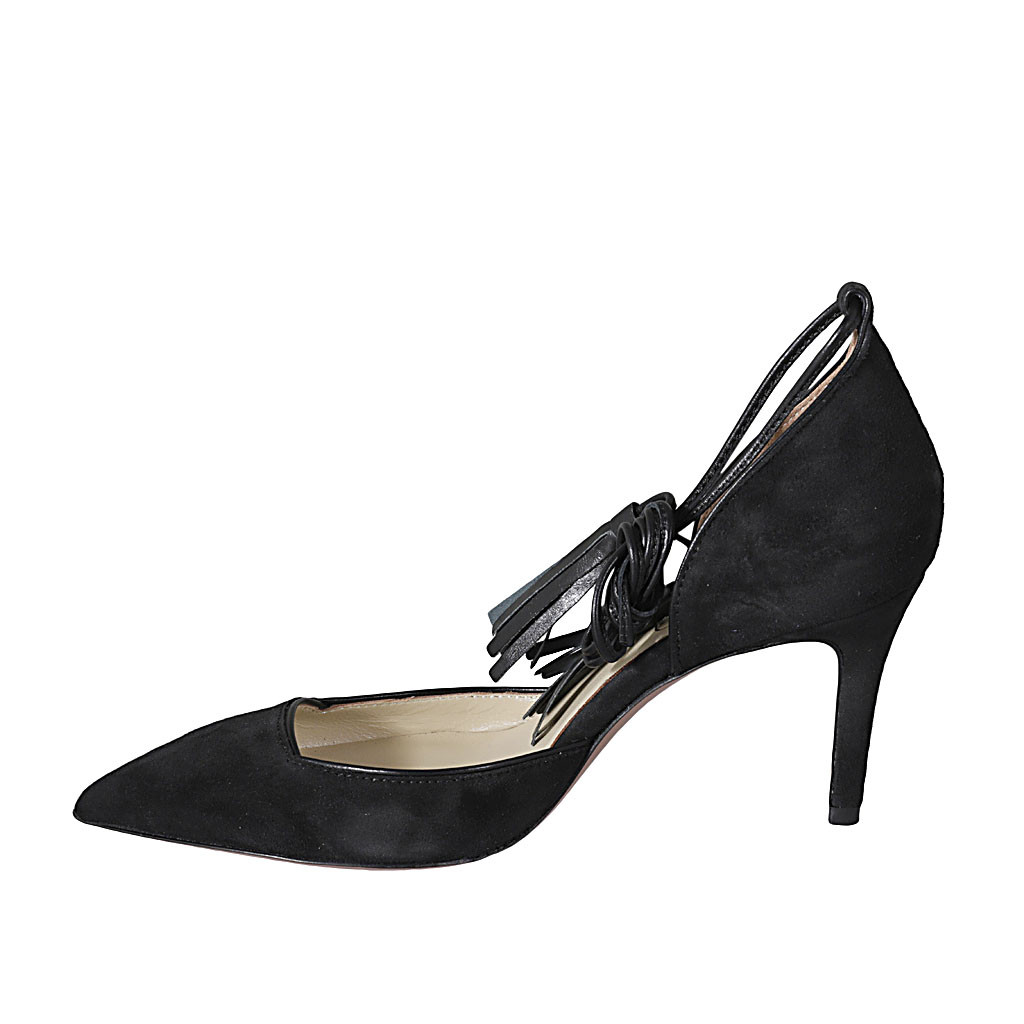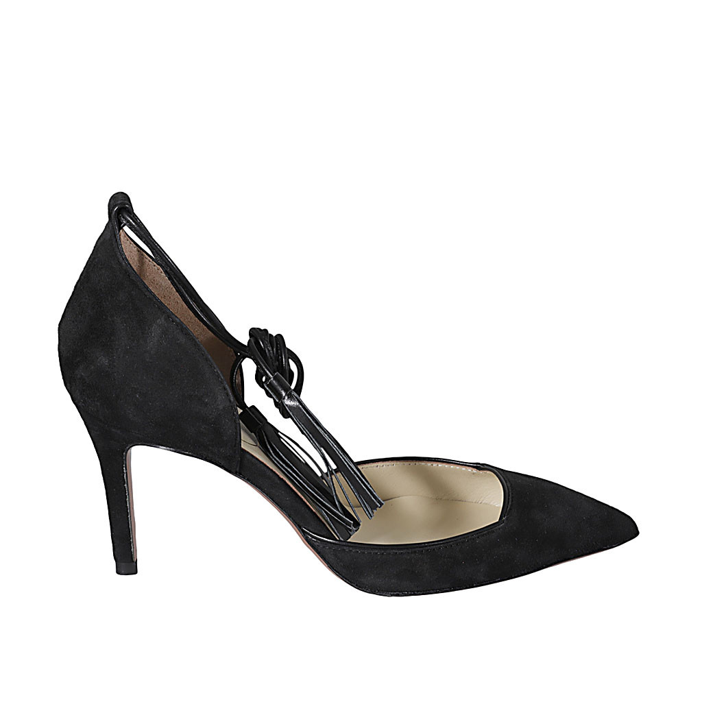 Damenzehensandale mit Accessoire aus schwarzem Leder Absatz 2