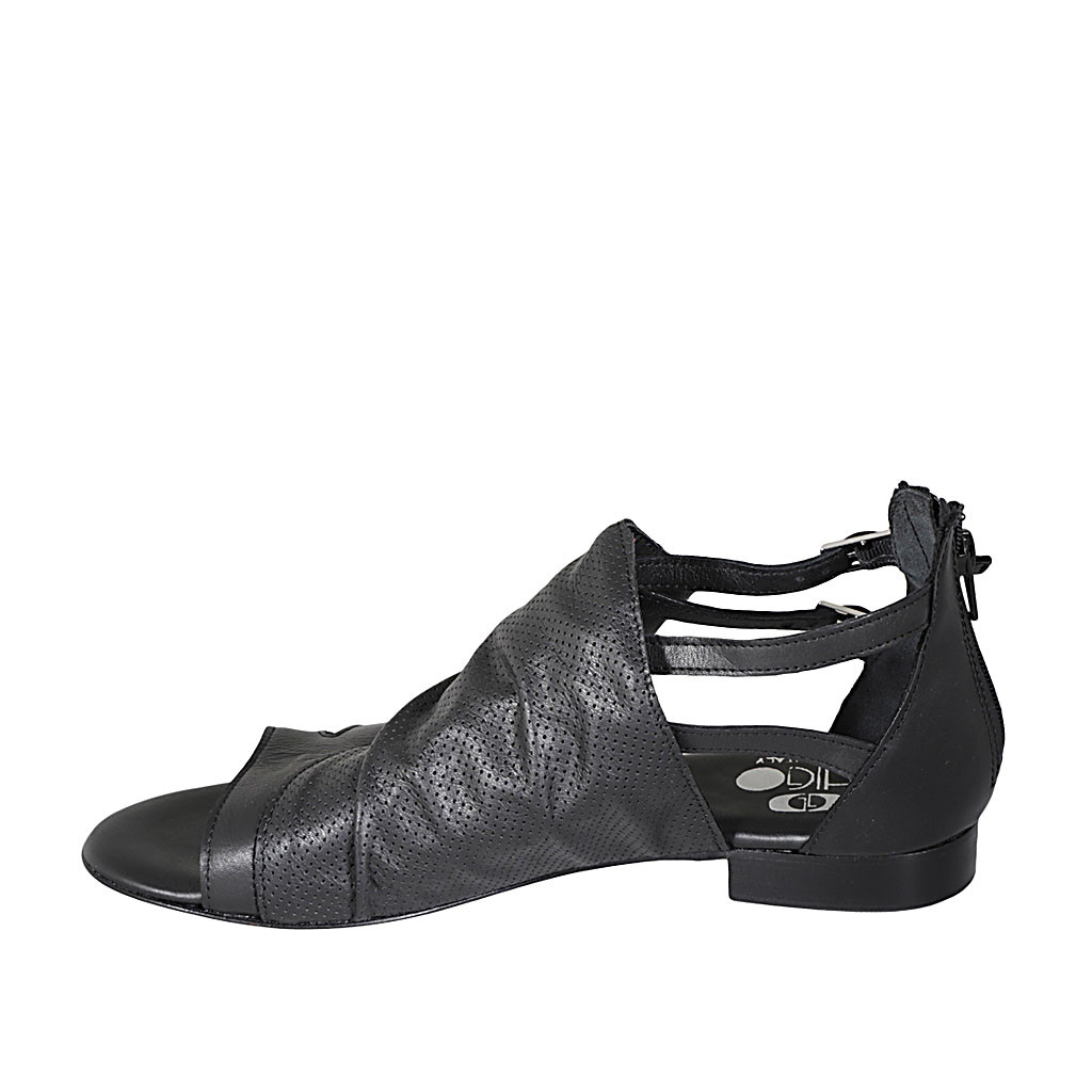 Damenschuh mit abnehmbarer Innensohle und T-Riemchen aus schwarzem Lackleder und Leder Keilabsatz 6