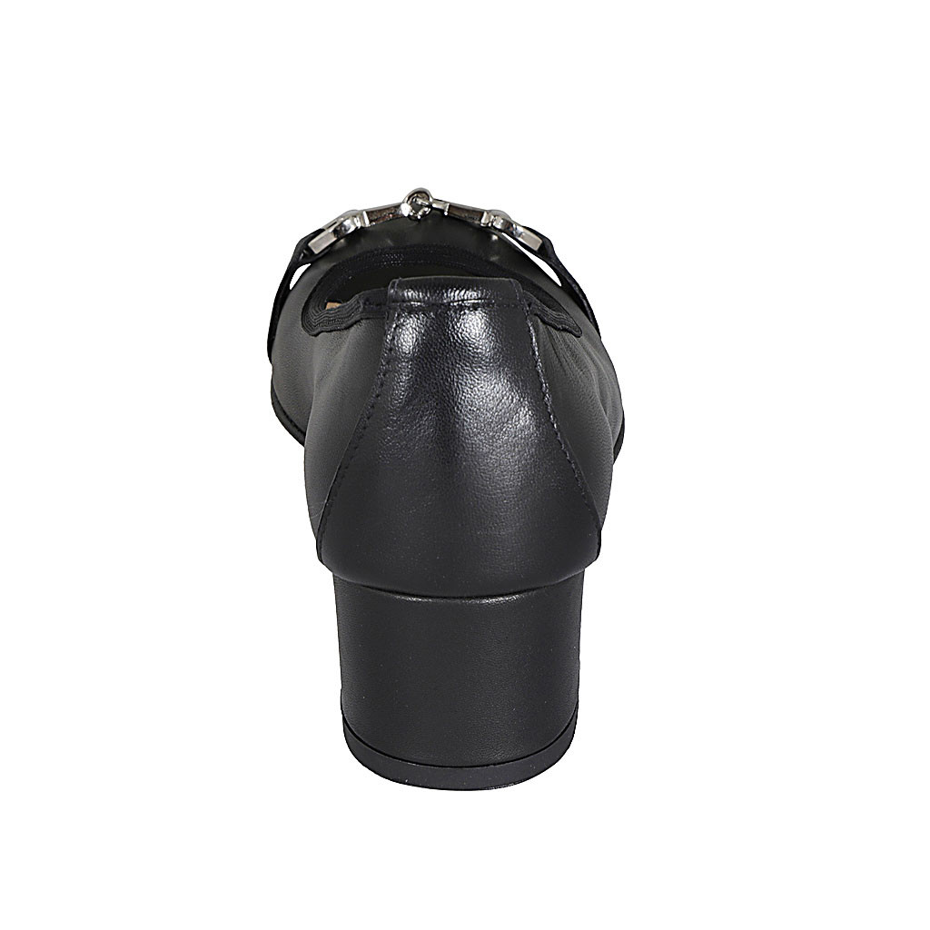 Spitzer Slingback für Damen aus schwarzem Leder Blockabsatz 6